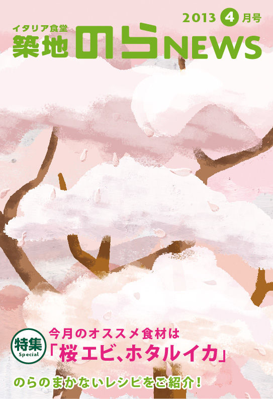 2013/04/22 のらNEWS 4月号表紙絵 カテゴリ:Works イタリア食堂築地のら のフリーペーパー4月号の表紙絵を描きました。 「Works」カテゴリの最新記事 トラックバック 天の一角 その2花見